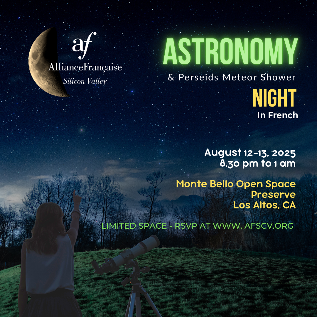 Join us for a magical evening under the stars! For the very first time, the Alliance Française Silicon Valley is hosting a Bilingual Astronomy & Perseids Meteor Shower Night at the breathtaking Monte Bello Open Space Preserve.