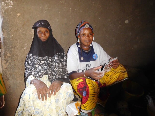 Elles ne prirent pas peur quand elles me virent m'avancer vers elles.  Mon guide tout souriant, s'adressa à elles en mooré. Elles étaient intimidées et moi, encore plus. Je ne savais quelle contenance adopter. Finalement la magie opéra. La 1ère jeune femme qui rompit la glace fut Merama. Elle me prit tout simplement la main. Nous n'avions aucun autre moyen de communication. Personne dans ce village peul ne parle le français. Certains ne parlent même que le fulfulde, la langue des Peuls.
